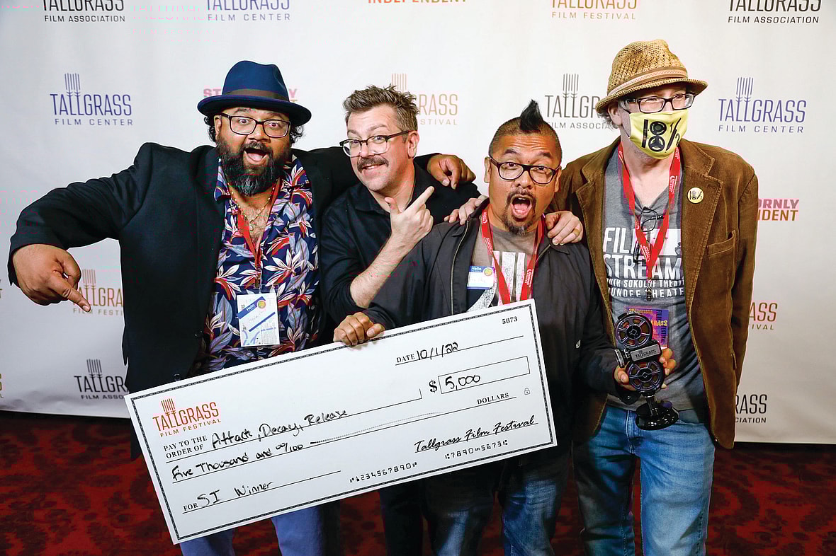 winner H.P. Mendoza (holding check), director of Attack/Decay Release. Photo courtesy of Tallgrass – Credit: C/O
