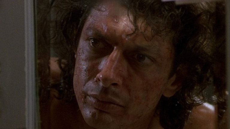 Jeff Goldblum stars as scientist Seth Brundle opposite Geena Davis as his girlfriend Veronica Quaife. When Seth tests out a new teleportation device, he accidentally lets a fly into the chamber, merging him with the insect.