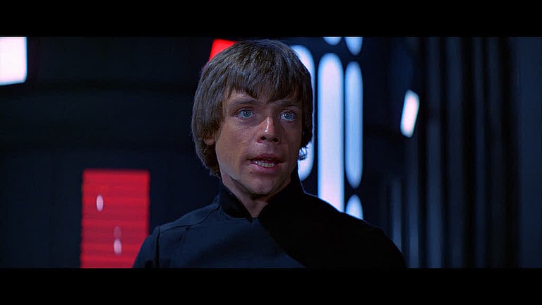 In the first 48 minutes of the movie, Lucas also introduces at least seven iconic, unforgettable characters: C-3PO, R2-D2, Darth Vader, Princess Leia, Luke Skywalker, Obi-Wan Kenobi, and — near the 50-minute mark — Han Solo and Chewbacca. Everything that seems too coincidental on early viewings turns out to make perfect sense. (Why does Luke just happen to live near Obi-Wan? Becuase Obi-Wan has been keeping watch over him, all his life.)