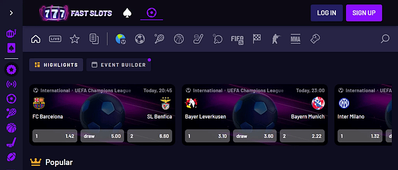 10. Fast Slots – Top Betting Site with Several Leagues and Events