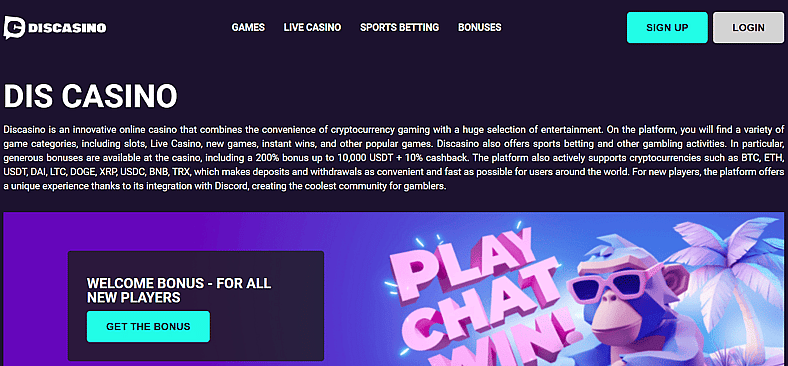 Discasino features a community for players through Discord channels that make it stand out among the best crypto betting sites. Players on these channels can interact, connect, and exchange tips and strategies. This crypto betting site boasts 24/7 customer support and a simple interface.