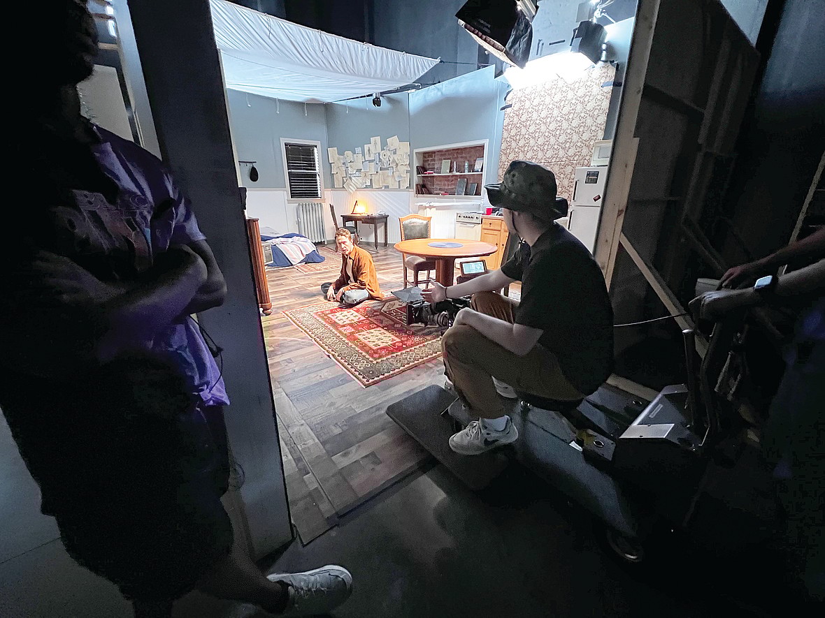 1st AD CJ Callins, actor Jordan Woods-Robinson and cinematographer Jeno Broschofsky on the student film “Blinds Wide Shut” by Ben Sutherland at Ringling, one of our Best Films in the U.S. and Canada. Courtesy of Ben Sutherland. – Credit: C/O