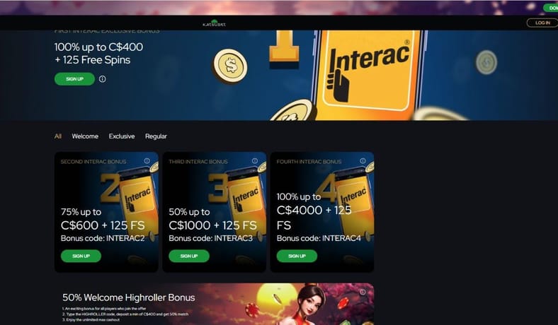 | KatsuBet | 325% up to C$6,000 + 500 Free Spins | Highest Payout Online Casino |