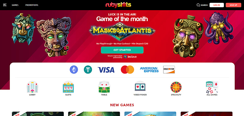 A content-heavy platform defines this crypto casino, giving you access to over 400 games across multiple categories. You can activate a 200% welcome bonus with 50 free spins using code RUBY250, alongside recurring offers like RUBYRAIN and GEMSTONE available throughout the month.