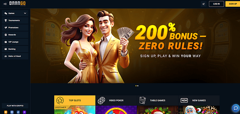 - Brango Casino – Get $150 on Sign-Up and up to 30% VIP Cashback