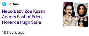 Pugh News: Florence Pugh, who is in many things, will also be in a Zoe Kazan adaptation of East of Eden for Netflix, Deadline reports. The John Steinbeck novel was rather famously adapted in 1955 by Zoe’s grandfather, Elia Kazan.