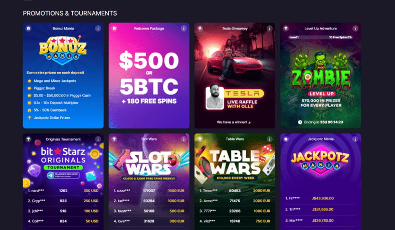 - BitStarz Originals: Weekly Telegram exclusive tournament, offering $5000