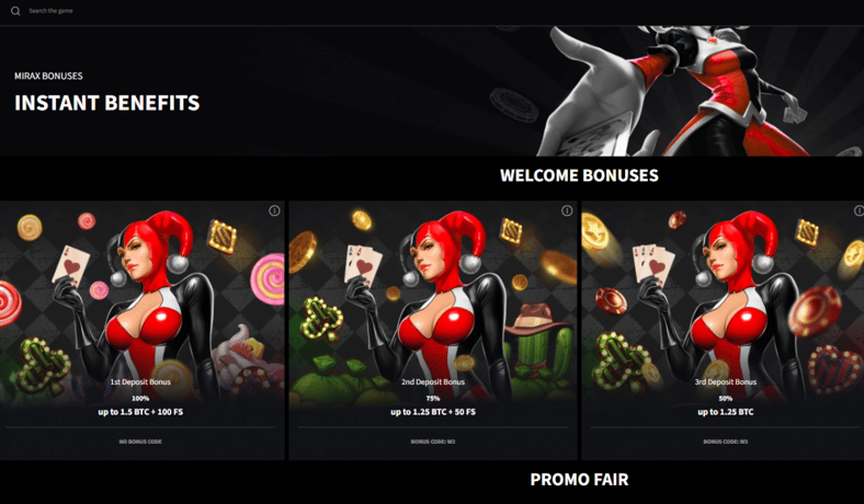| MIRAX Casino | 325% up to 5 BTC + 150 Free Spins | Instant |