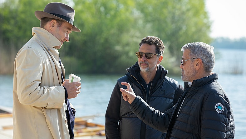 Main image: Actor Joel Edgerton, producer Grant Heslov and director George Clooney on the set of their film The Boys in the Boat, an Amazon MGM Studios film. Photo Credit: Laurie Sparham © 2023 Metro-Goldwyn-Mayer Pictures Inc. All Rights Reserved.