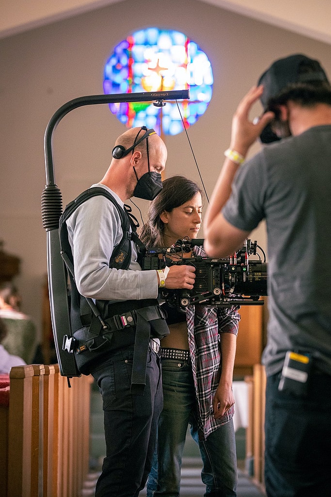 DP Jake Saner and writer-director Sarah Elizabeth Mintz on the set of Good Girl Jane. Photos by James Berry