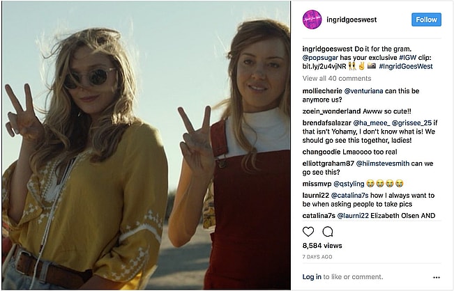 Olsen and Plaza in a still from Ingrid Goes West, featured on the film’s official Instagram account
