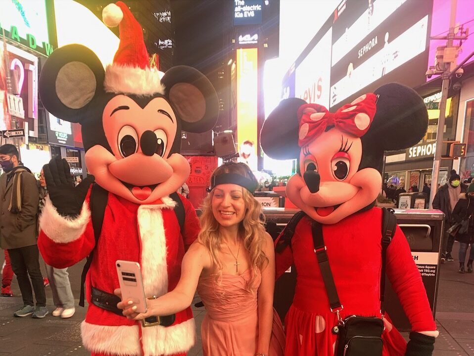 Karen Knox as Samantha filming in Times Square.