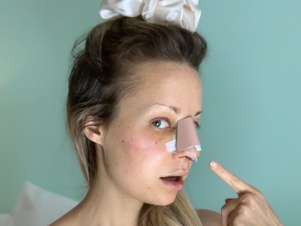 We decided we needed to film the moment I saw my new nose for the first time (as Samantha). I would need to go in character for my splint removal appointment. I could not explain to my intimidatingly beautiful plastic surgeon’s army of sexy nurses what I was up to. Well, I could have, but when I ran the scenario in my head the looks of confusion and disappointment from the nurses reminded me too much of every Christmas dinner I’d spent explaining my career to my not-in-the-arts extended family. I settled on asking the nurses if I could film the nose reveal for my…“boyfriend.” They were happy to accommodate and graciously reserved comment when I “went Samantha mode” and the iPhone rolled.