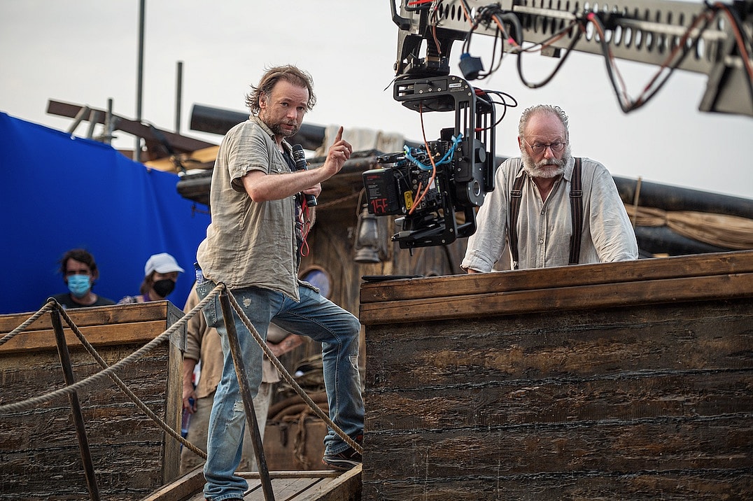 “We split the ship basically in two,” he says. “The interior we shot up in Babelsberg in Berlin. We built the whole interior of the ship on stage. It’s a huge ship with real wood. Everything is amazing construction. Then we went to Malta to the tanks that they have there, which is sitting right on the ocean, and you can see out on the Mediterranean Sea. We were able to use that as part of our background.”