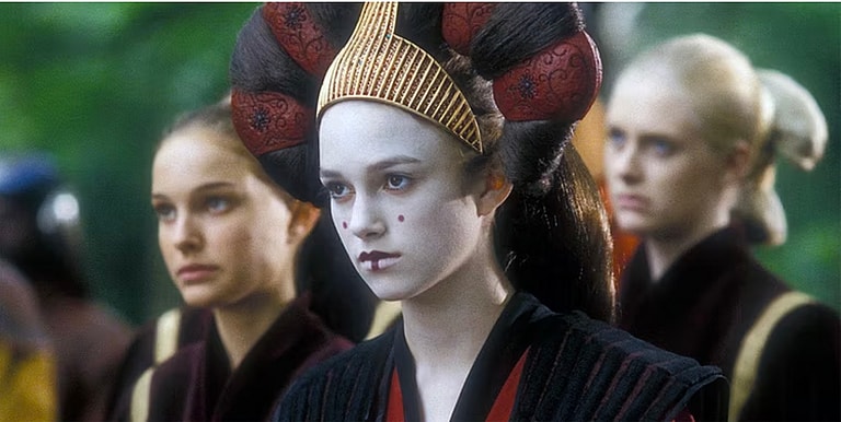 One of the cool things about Phantom Menace was the idea that Padmé, like Saddam Hussein, used doubles to confuse people. Her main double as Queen Amidala was Sabé, one of her handmaidens, played by future big star Keira Knightley. That’s pretty cool.