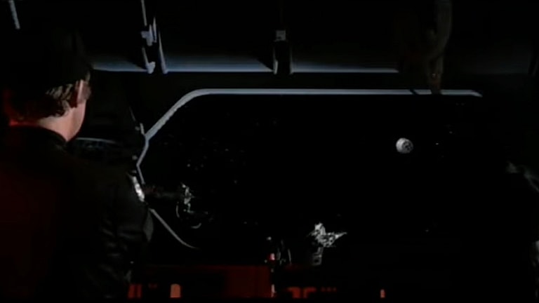 “Hold your fire. There’s no life forms. It must have short-circuited,” he stupidly says.
