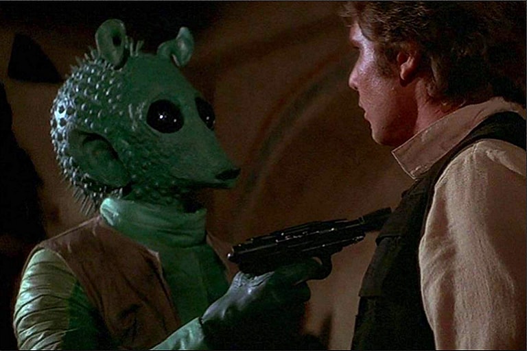 But real Star Wars fans know the facts: Han Solo is a stone-cold killer. And we like it that way. Diehard fans will be able to see the original Greedo scene when a rare print of the 1977 Star Wars screens next month at the British Film Institute’s Film on Film Festival.