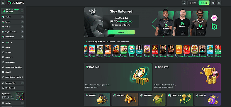 BC.Game offers over 8,000 games, including slots from Pragmatic Play, Hacksaw Gaming, and NoLimit City, live dealer tables, and sports betting. The platform’s Original Games feature provably fair mechanics built on Ethereum smart contracts. The modern, crypto-focused interface works smoothly on mobile browsers with intuitive navigation, and the dark theme design appeals to cryptocurrency enthusiasts.