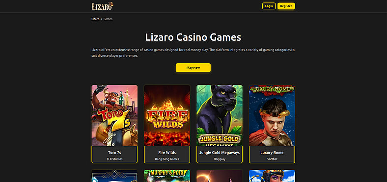 Lizaro’s biggest strength is its extensive game library, especially for fans of Nolimit City. Players can dive into hard-hitting titles known for extreme volatility, bonus buys, and uncapped win potential. Alongside Nolimit City, other suppliers are also available.