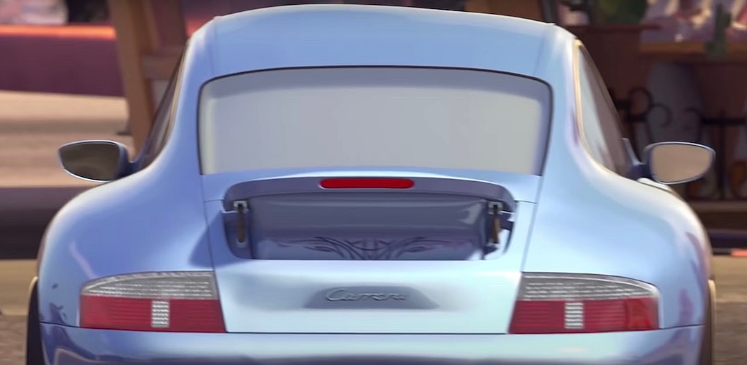 Lightning McQueen realizes his love interest, a Porsche Carrera named Sally, has a bit of a wild side when he sees her rear pinstriping — the car equivalent of a lower-back tattoo.