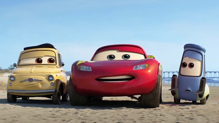 Lightning McQueen’s new trainer, Cruz Ramirez, makes a comment that only people who remember the old Life Alert commercials will recognize as a throwback. Cruz asks, “You’re old — what if you fall on this beach and can’t get up?”