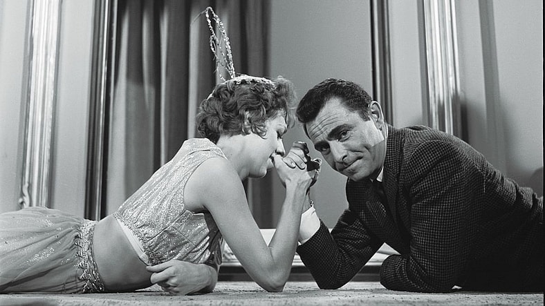 Main image: Rod Serling in a promotional behind the scenes image from The Twilight Zone. CBS