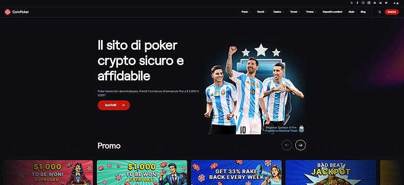 - CoinPoker: Sito non AAMS specializzato in poker, con tanti bonus e promozioni