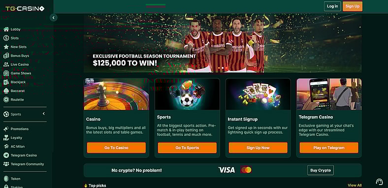 Tra i tanti, TG Casino si distingue come il nostro preferito. Questo perché offre un’esperienza unica, con un bonus di benvenuto del 200% fino a 10 ETH, un’interfaccia intuitiva e la possibilità di scommettere in criptovalute, garantendo transazioni rapide e sicure. TG Casino combina innovazione, semplicità e ottimi vantaggi per gli utenti, rendendolo una scelta ideale per chi cerca un bookmaker affidabile e moderno.