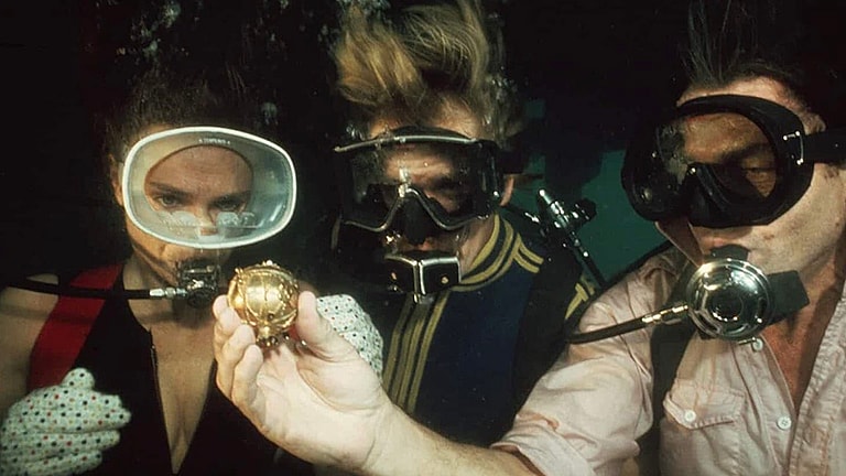 This thriller stars Jacqueline Bisset and Nick Nolte as amateur treasure-hunting divers who come across the cargo of a World War II shipwreck, which puts them at odds with local criminals. It was co-written by Peter Benchley, who wrote the novel Jaws and co-wrote the film.