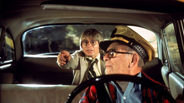 George Burns (right), who was 81 at the time of the film’s release, plays God, who visits normal-guy grocery store assistant manager Jerry (John Denver, left).