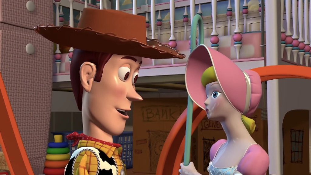 There’s a scene in the first Toy Story where Bo Peep thanks Woody for saving her heard of sheep, and Woody gets weak in the knees while talking to her. Bo Peep is flirting so heavily with Woody that she even suggests that she could get someone else to watch her sheep tonight, implying that she and Woody could have some alone time. Bold!
